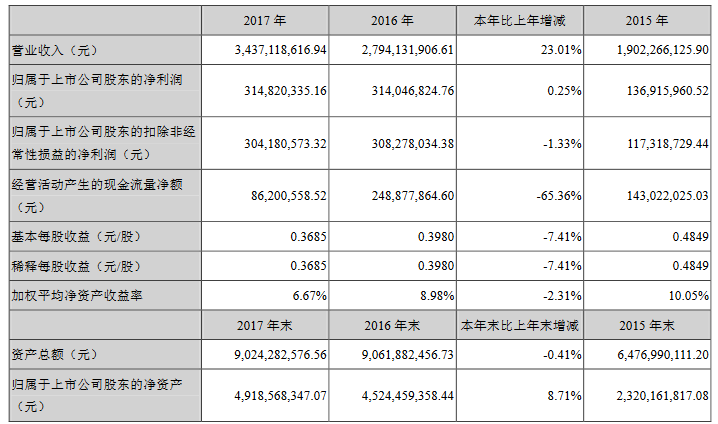 ? 三安光電2017年年度報告主要財務數據